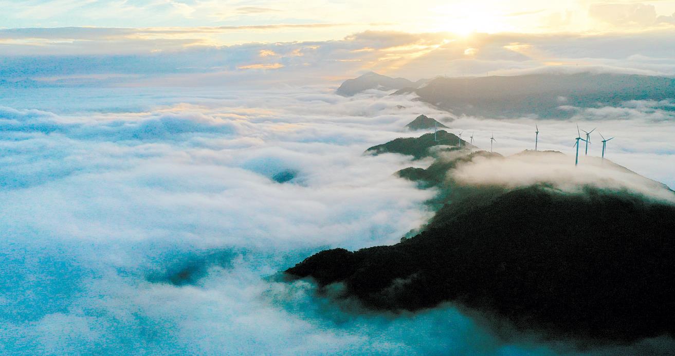 臺(tái)山風(fēng)車山出現(xiàn)壯美云海奇觀。