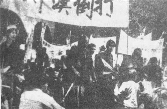 ????1942年七八月間,紅線女跟隨馬師曾帶領(lǐng)的劇團(tuán)進(jìn)入廣西演出。為了配合抗日宣傳以及為抗戰(zhàn)籌款勞軍,他們演出馬師曾自己編寫(xiě)、痛斥漢奸賣(mài)國(guó)賊的《洪承疇》等戲劇,借古諷今。其中有一段唱道:“衰漢奸、病漢奸,千刀千刀理該斬……”由獨(dú)唱到全場(chǎng)合唱,節(jié)奏由慢而快,氣氛熱烈,整個(gè)劇場(chǎng)掌聲雷動(dòng),群眾不由得振臂高呼“打倒?jié)h奸賣(mài)國(guó)賊!”