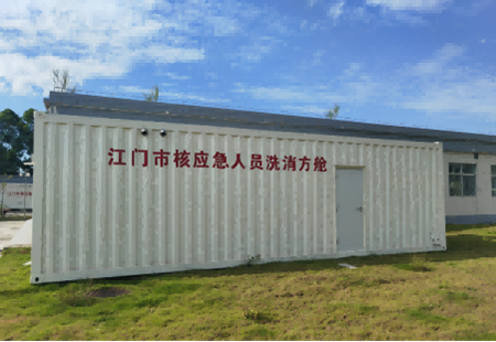 該項目在全省首開 “平戰(zhàn)一體、共建共享” 先河,以臺山市中醫(yī)院赤溪分院現(xiàn)有基礎設施為依托,通過場地硬化、管道埋設、設備安裝等基建工程,建成了移動式去污洗消方艙(主艙1個+輔艙1個)、固定式車輛洗消通道、人員門式檢測裝置、伸縮式輻射檢測儀和手持式核素定性檢測儀等核心設施,配套背式噴霧器、鼓風機、消防站等輔助設備,實現(xiàn)人員從初檢、分流、去污到復檢的閉環(huán)處理,滿足臺山核電廠煙羽應急計劃區(qū)核污染洗消需求,初步形成輻射監(jiān)測與去污處置能力,填補了當?shù)貓鐾夂藨痹O施的空白。